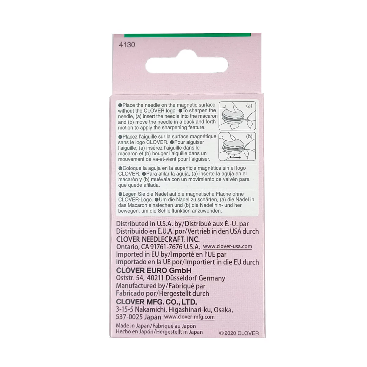 4130 Магнитная игольница-точилка для игл "Макарун", 36 х 20 мм, цвет розовый, Clover