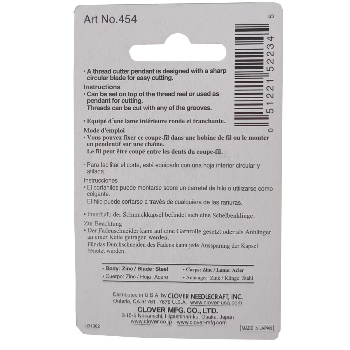 454 Подвеска с подрезателем нитей, 3х4,5см, цвет античное серебро, Clover