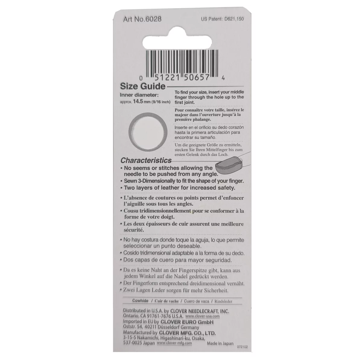 6028 Наперсток из натуральной кожи, размер S, 14,5 мм, Clover