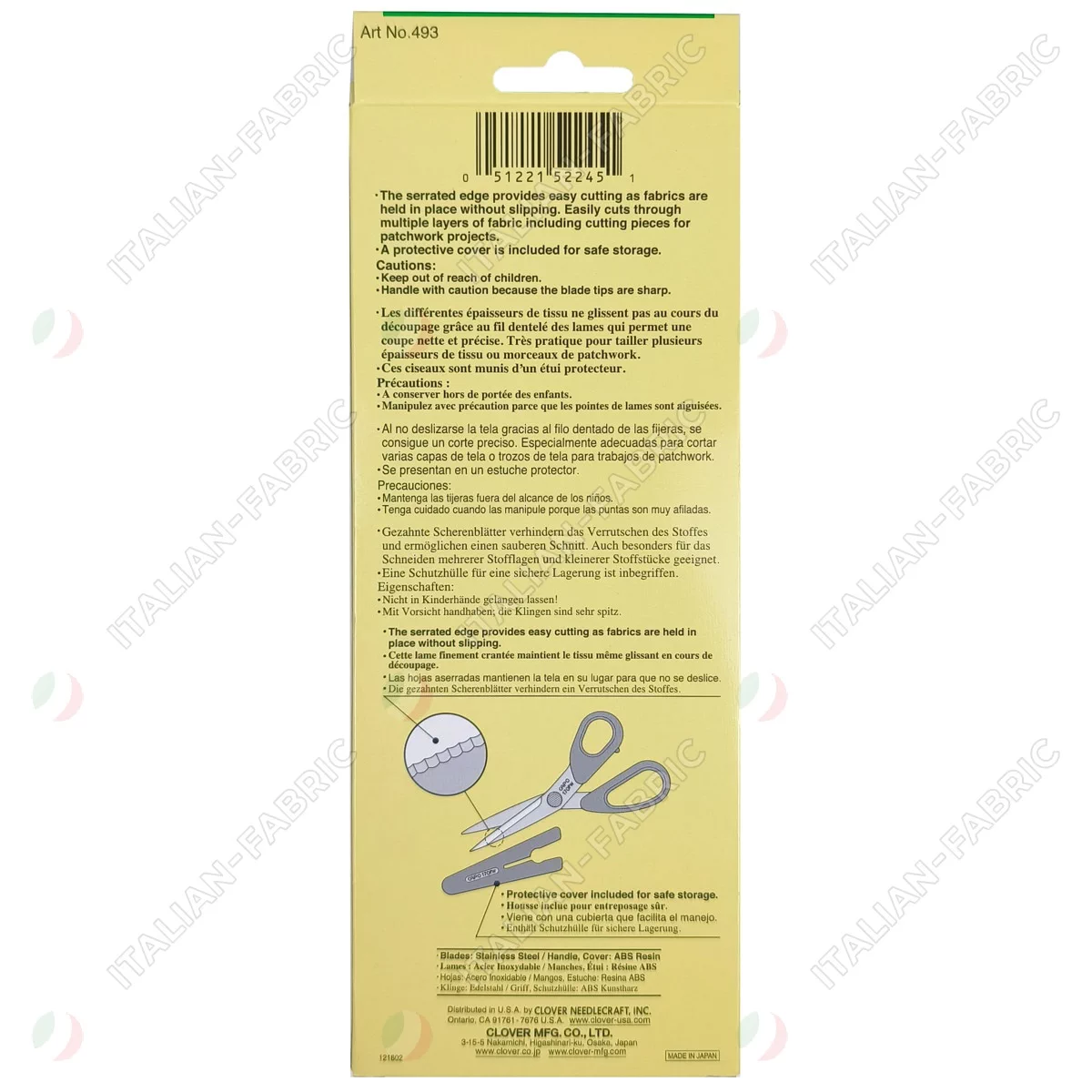 493 Ножницы для пэчворка, 17 см, с пластиковым чехлом, Clover
