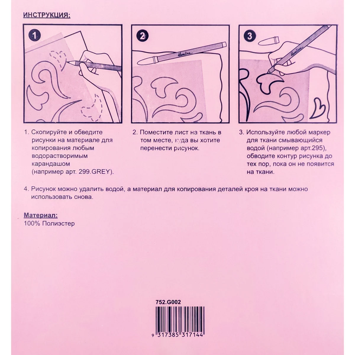 752 Материал для копирования деталей кроя на ткань, многоразовый, 100 x 150 см, Hemline