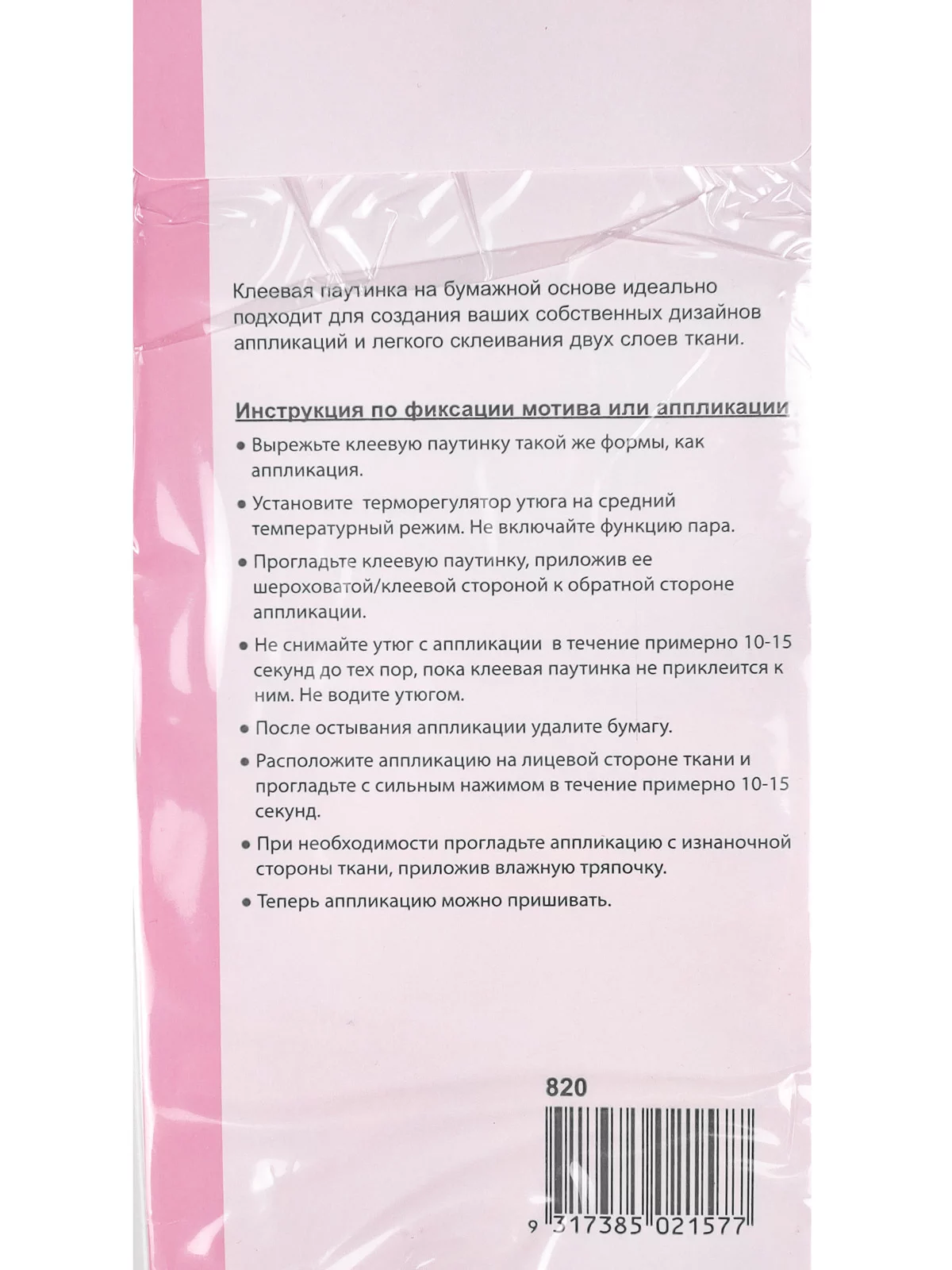 820.U.N Паутинка клеевая для аппликаций и рукоделия (ультра), 43*93см, Hemline
