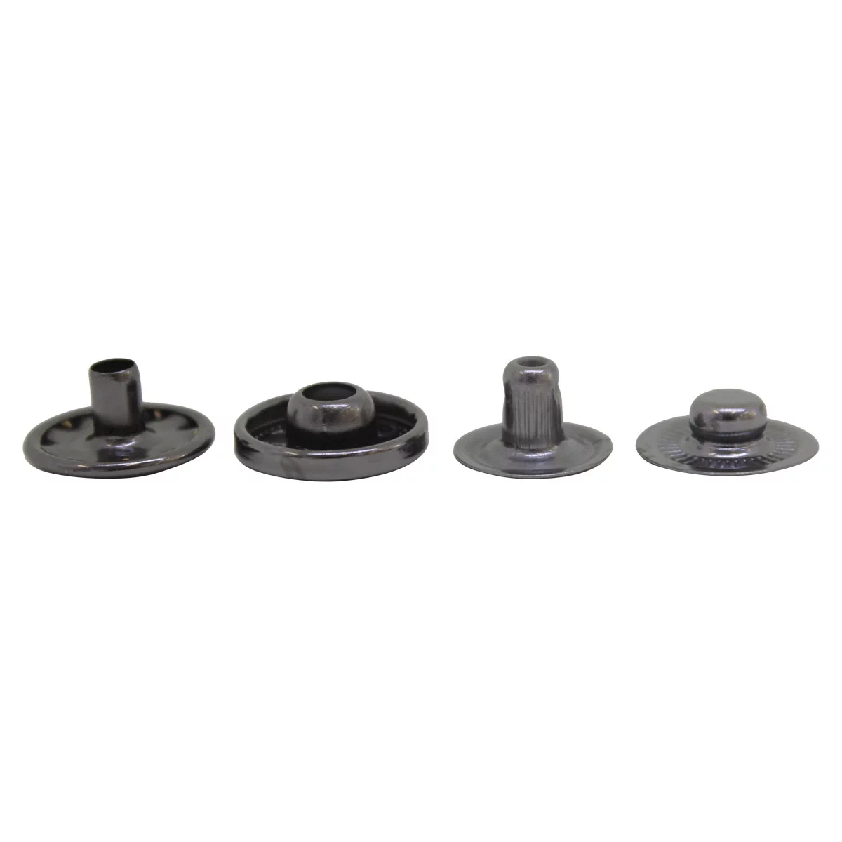 Минималистичные непришивные кнопки-застежки без украшений, гладкие, полусферической формы. Материал – сталь, тип контакта – 'пружина'. Диаметр кнопки 15 мм. Качество изготовления гарантирует прочное соединение и удобство застегивания/расстегивания кнопок. Фурнитура такого дизайна подойдет для одежды самых разнообразных стилей – от провокационного молодежного стрит-стайла и стиля рок до строгой элегантной классики и нежного бохо.