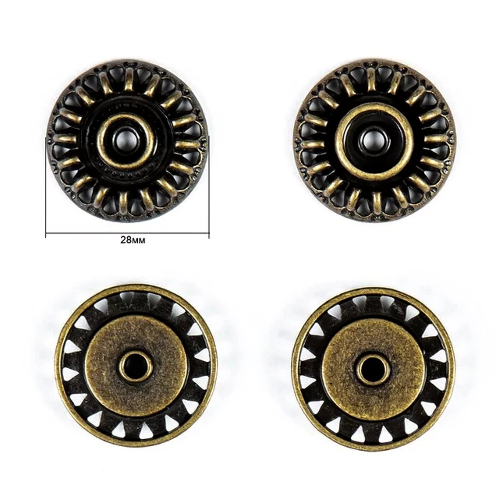 Металлические пришивные кнопки с гальваническим покрытием и не подвержены коррозии. Преимущество пришивной кнопки состоит в том, что для ее установки на изделие не надо иметь специального оборудования. Диапазон использования пришивной кнопки достаточно широк: от изготовления одежды до оформления интерьера. Пришивные кнопки выполнены достаточно декоративно, по краю имеют отверстия для иглы.
