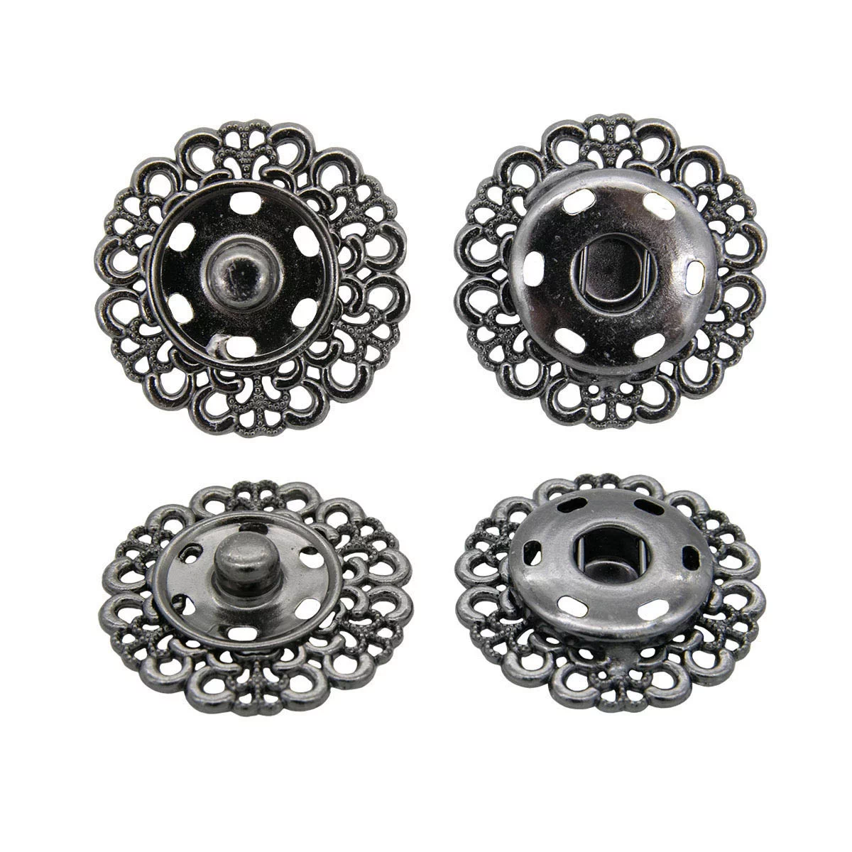 Кнопка пришивная представлена в нескольких цветах. Оформлена очень красивыми ажурными краями. Кнопка состоит из двух частей и соединяются между собой пружинкой, такой тип контакта называется 'пружина'. Благодаря такому соединению можно не переживать, что куртка или другое изделие случайно расстегнётся. Данные кнопки можно использовать для ремонта изделий. Рукодельницы найдут для кнопок различное применение: зафиксировать ремешок, браслет, сделать застежку в косметичке. Также кнопки широко используются при пошиве и изготовлении обуви, перчаток и прочей кожгалантереи.