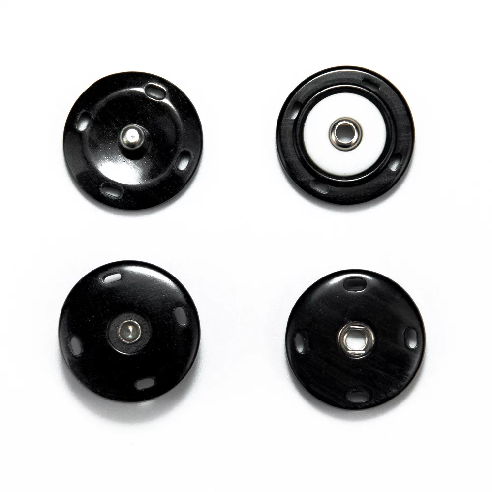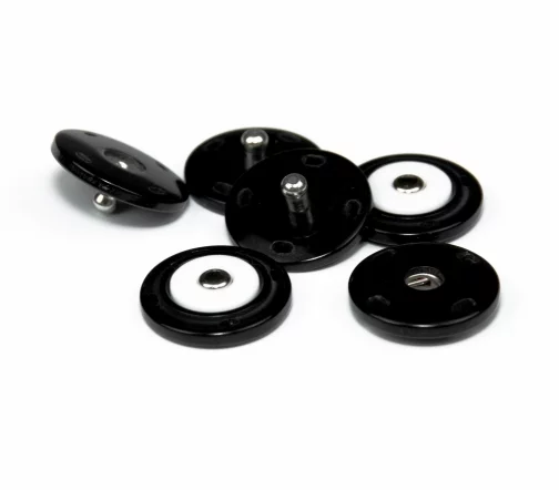 Пришивная пластиковая кнопка из двух плоских частей с металлической вставкой. Покрытие полуглянцевое с перламутровым переливом в оттенках серого. Минималистичный дизайн и удобство в использовании позволят применить ее в самых разнообразных проектах и изделиях, прежде всего для обработки застежки верхних изделий.
