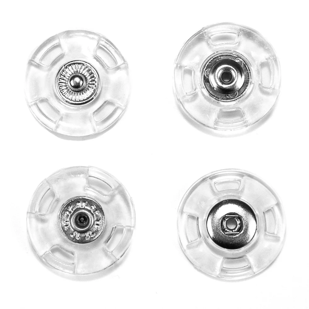 Пришивные кнопки-застежки круглой формы с обкладкой из прозрачного пластика. Диаметр 21 мм, цвет металлической части – серый металлик. Минималистичный дизайн и удобство в использовании этой фурнитурной детали позволят применить ее в самых разнообразных проектах и изделиях, а мягкая обкладка гарантирует прочность крепления.