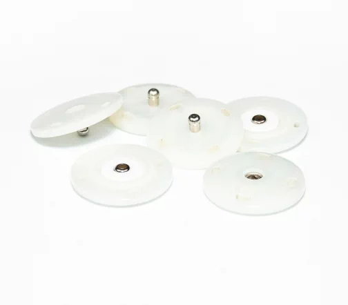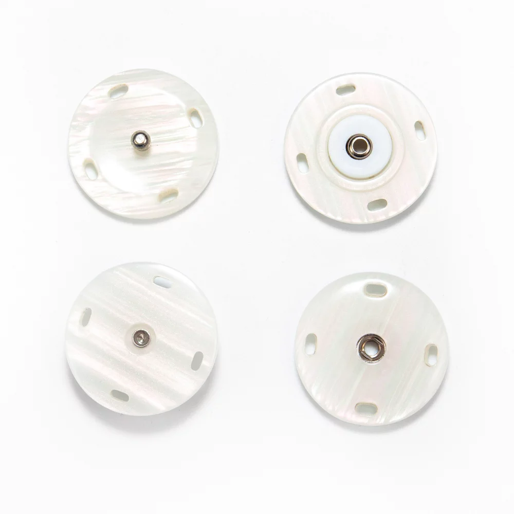 Пришивная пластиковая кнопка из двух плоских частей с металлической вставкой. Покрытие полуглянцевое с перламутровым отливом под натуральную раковину. Минималистичный дизайн и удобство в использовании позволят применить ее в самых разнообразных проектах и изделиях, прежде всего для обработки застежки верхних изделий.