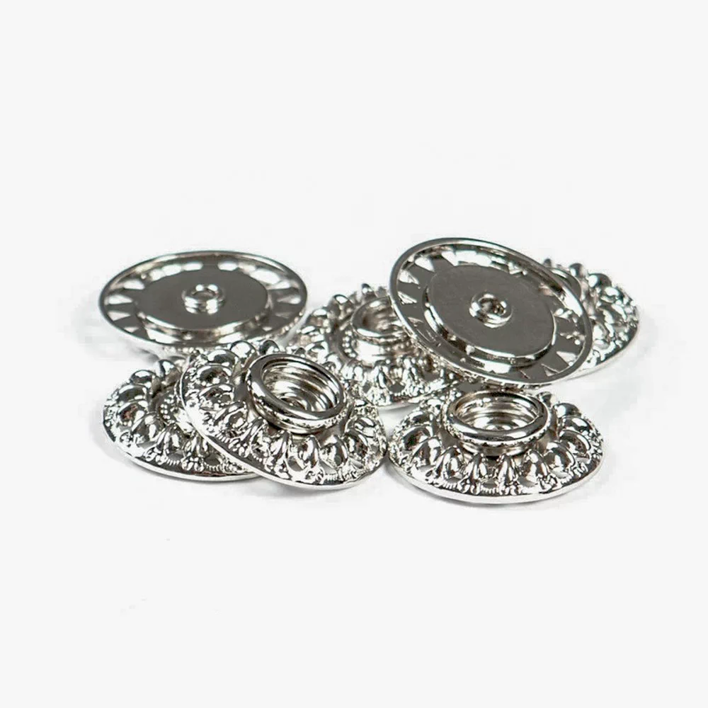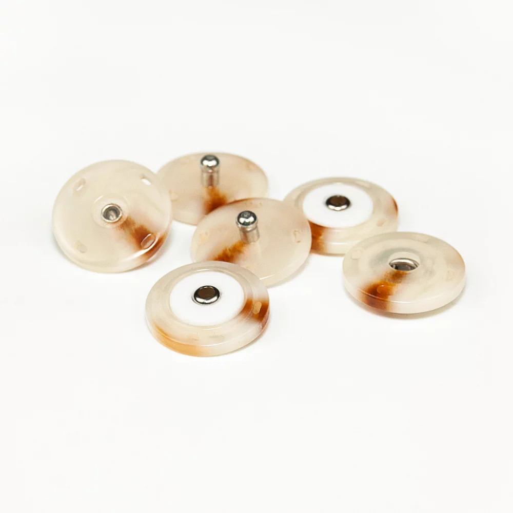 Пришивная пластиковая кнопка из двух плоских частей с металлической вставкой. Минималистичный дизайн и удобство в использовании позволят применить ее в самых разнообразных проектах и изделиях, прежде всего для обработки застежки верхних изделий.