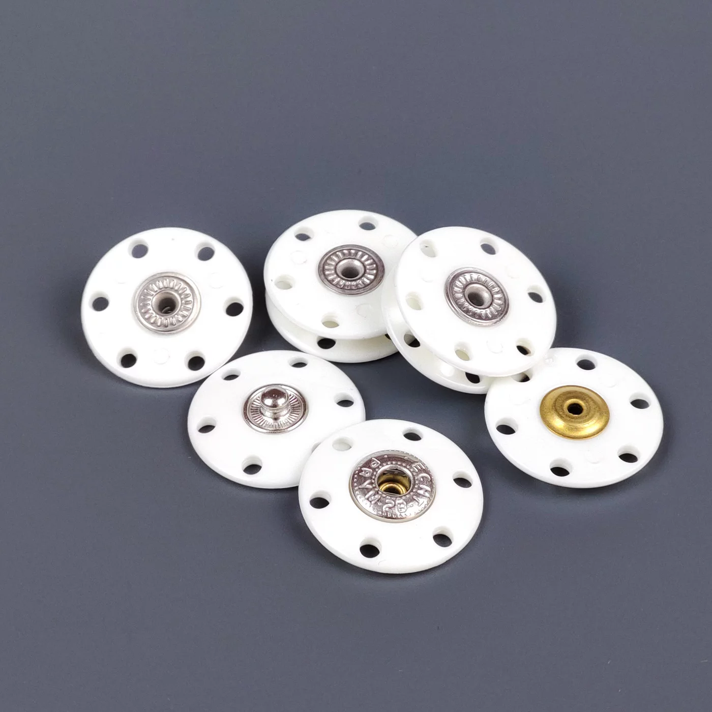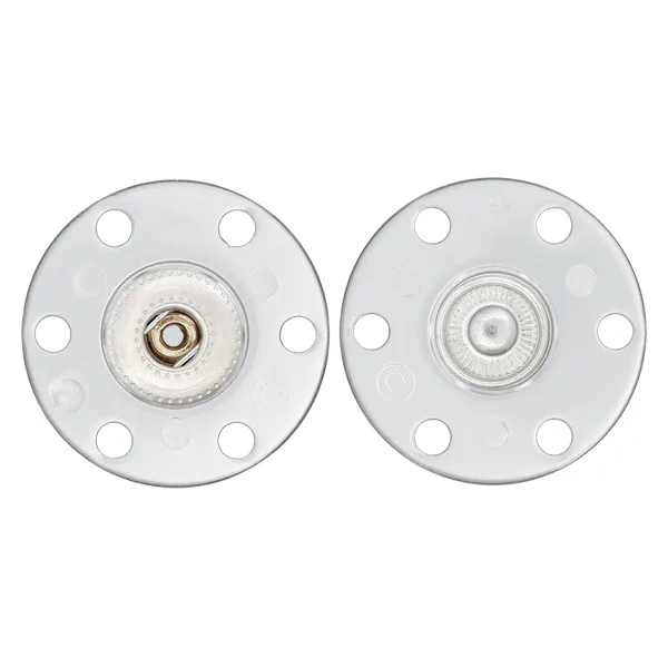 Пришивная пластиковая кнопка из двух плоских частей с металлической вставкой. Минималистичный дизайн и удобство в использовании позволят применить ее в самых разнообразных проектах и изделиях, прежде всего для обработки застежки верхних изделий.