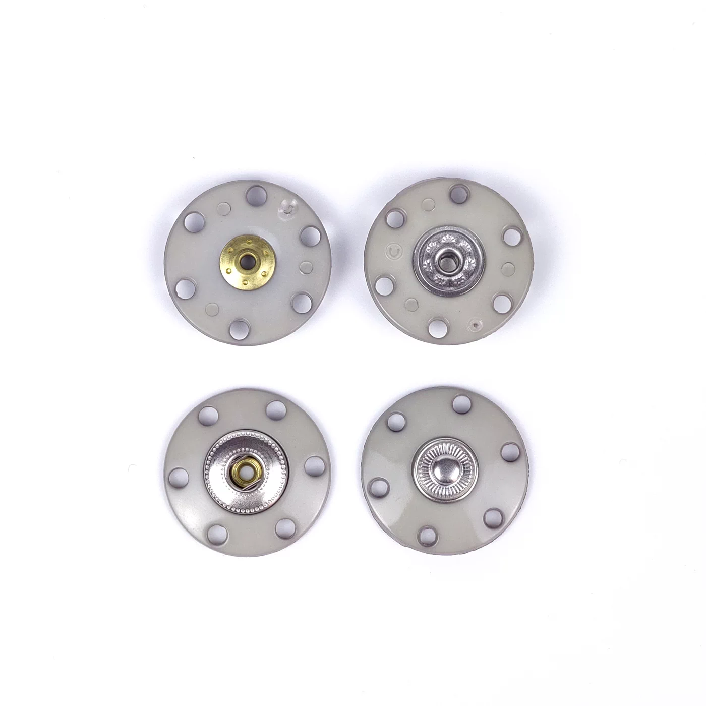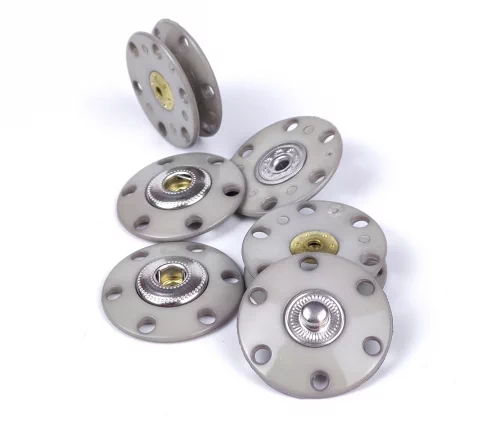 Пришивная пластиковая кнопка из двух плоских частей с металлической вставкой. Минималистичный дизайн и удобство в использовании позволят применить ее в самых разнообразных проектах и изделиях, прежде всего для обработки застежки верхних изделий.