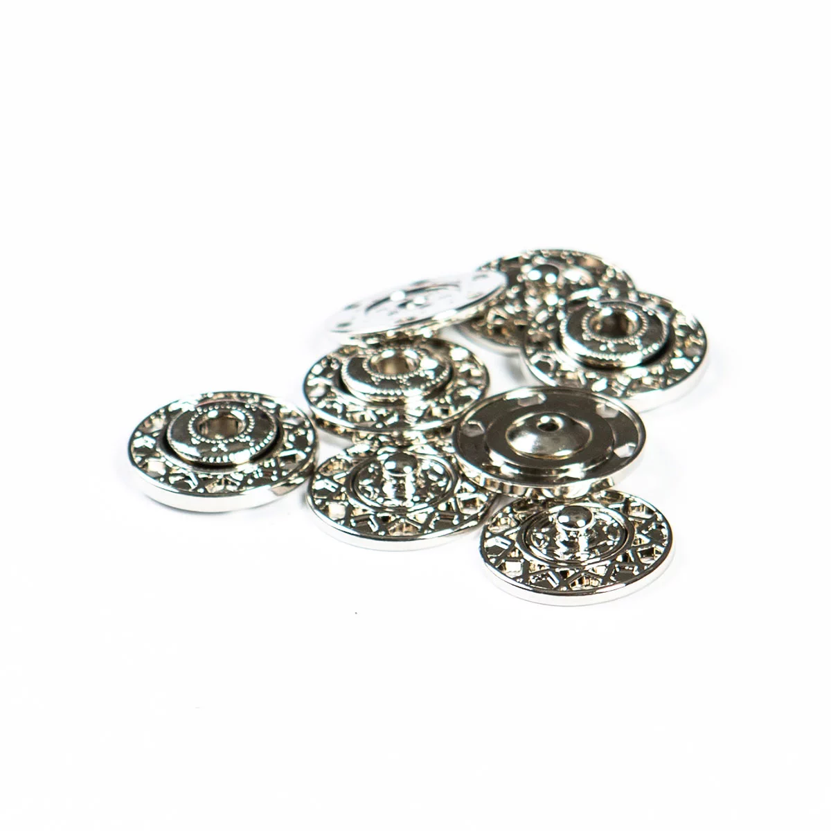 Минималистичные непришивные кнопки-застежки без украшений, гладкие, полусферической формы. Материал – сталь, тип контакта – пружинный S-образный замок. Качество изготовления гарантирует прочное соединение и удобство застегивания/расстегивания кнопок. Отвечают всем требованиям применения в суровых условиях.