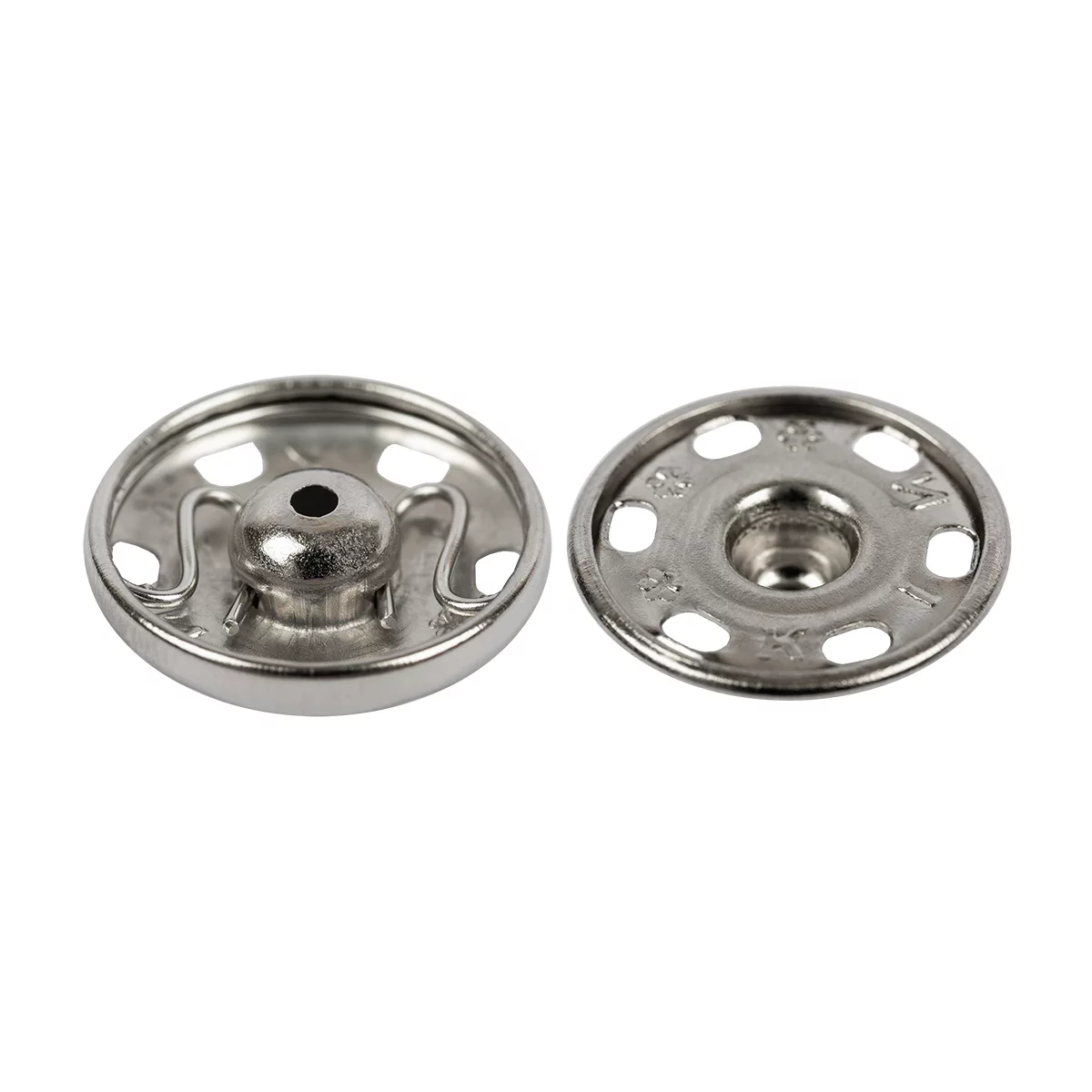 Круглые пришивные металлические кнопки многофункциональны: они прекрасно подходят для пришивания к повседневной мужской и женской одежде и аксессуарам снабжена загнутой кромкой: благодаря ей ткань не изнашивается, цепляясь за острые края. Застежка легко пришивается и удобна в использовании: четыре отверстия для пришивания гарантируют равномерную посадку кнопок на одежду. Кнопки изготовлены из нержавеющего металла.