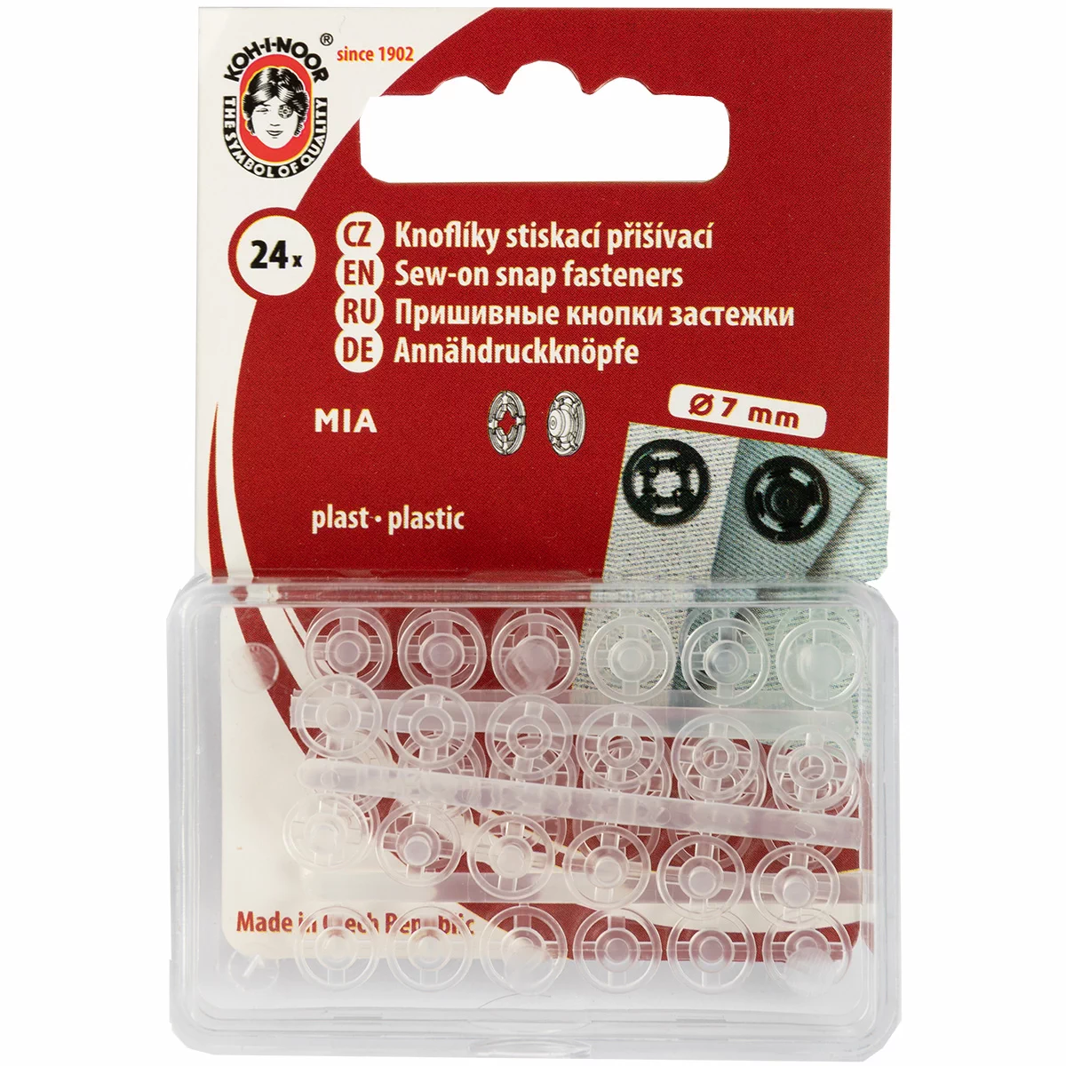 Пластиковые пришивные кнопки многофункциональны: они прекрасно подходят для пришивания к одежде, для изготовления поделок, а также для использования в домашнем хозяйстве и во время кемпинга. Кнопки изготовлены из прочной высококачественной пластмассы и, благодаря небольшому весу, идеально подходят для крепления к одежде из легких материалов и одежды для детей. Прозрачность кнопок обеспечивает удобство их использования в качестве застежек для постельного белья и наволочек. Четыре отверстия обеспечивают плотность пришивания застежек. Они выдерживают стирку при температуре до 80 °С и прослужат долго без замены.