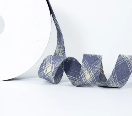 Косая бейка MATSA "шотландка", 18мм, хлопок, цвет 02, лилово-бежевый