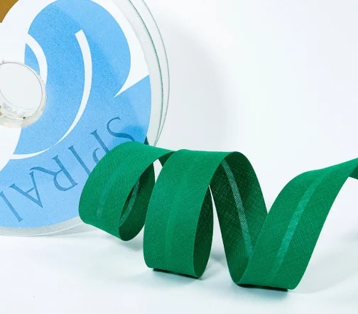 Косая бейка SAFISA, 20мм, хлопок, цвет 025, изумрудно-зеленый
