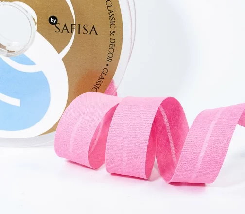 Косая бейка SAFISA, 20мм, хлопок, цвет 049, ярко-розовый