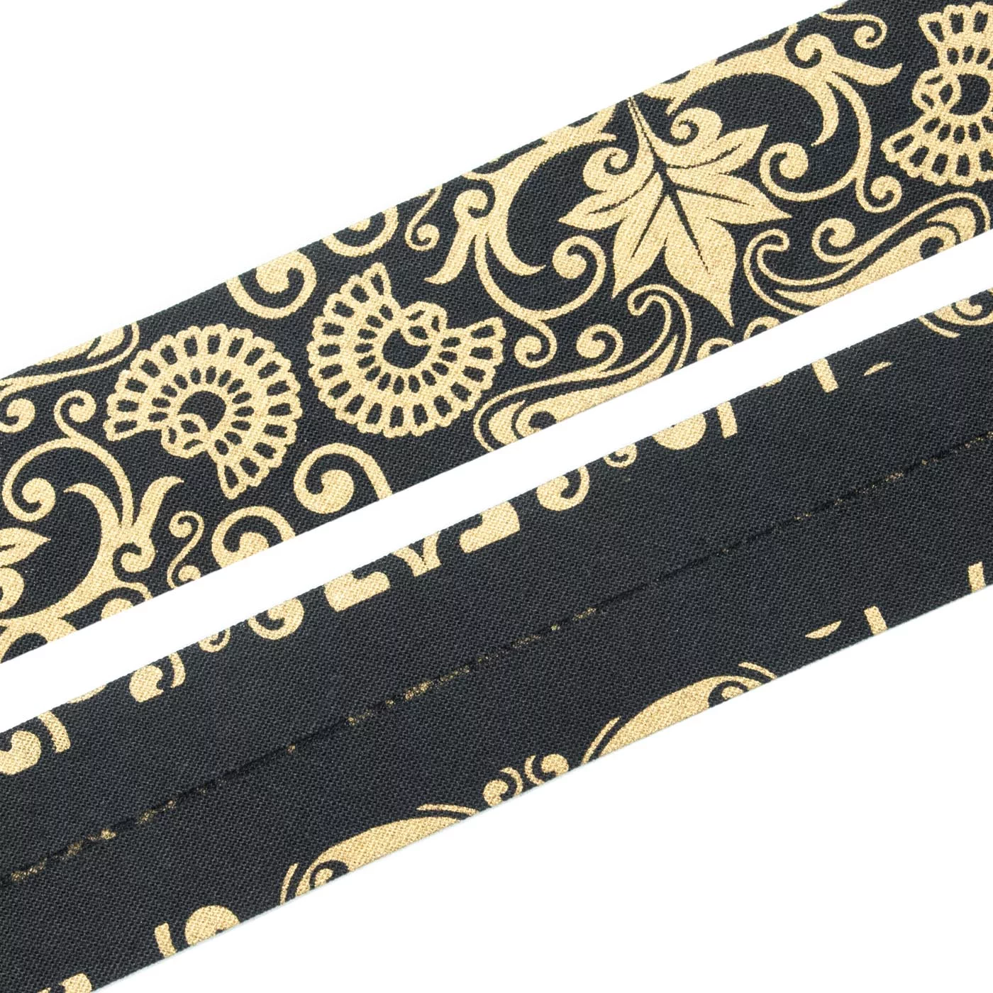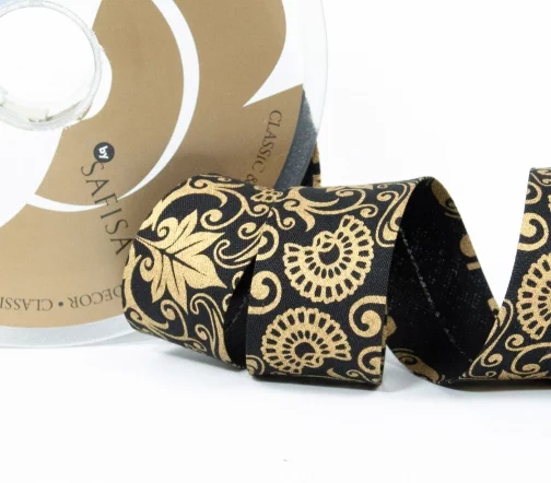 Косая бейка SAFISA с орнаментом, 30 мм, цвет 02, черный/золото