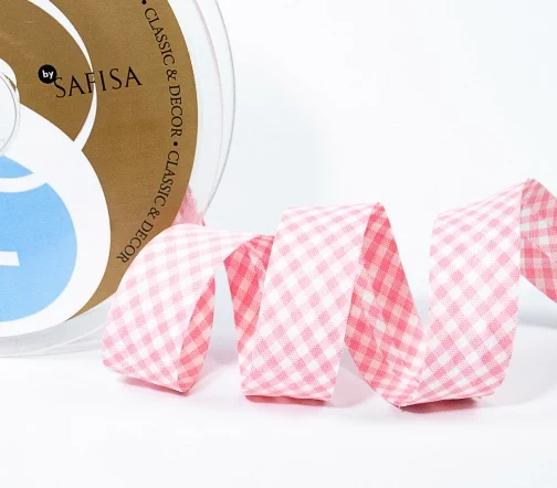 Косая бейка SAFISA в клетку, 20мм, цвет 05, розовый/белый