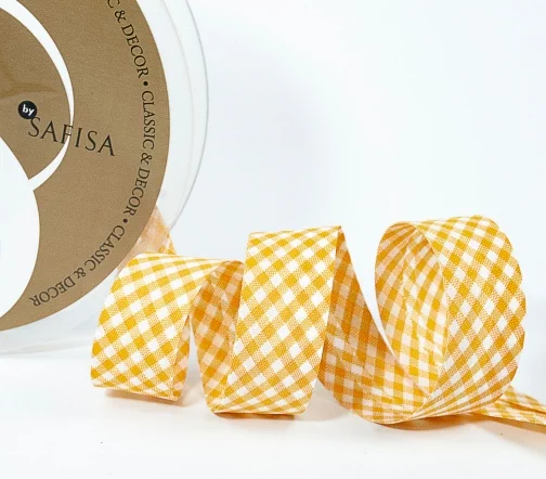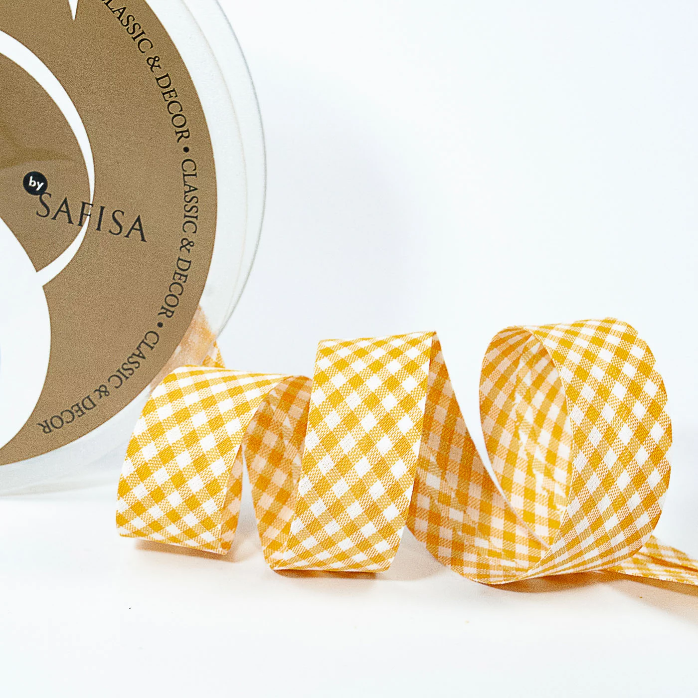 Косая бейка SAFISA в клетку, 20мм, цвет 22, желтый/белый
