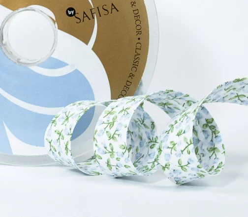 Косая бейка SAFISA с цветами, 20мм, цвет 01, нежно-голубой