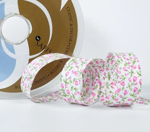 Косая бейка SAFISA с цветами, 20мм, цвет 02, розовый