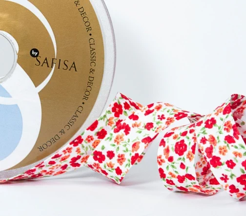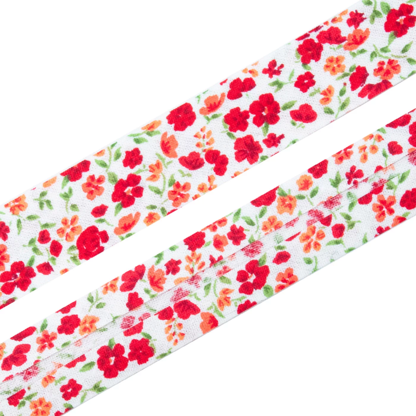 Косая бейка SAFISA с цветами, 20 мм, col. 03, красный/оранжевый
