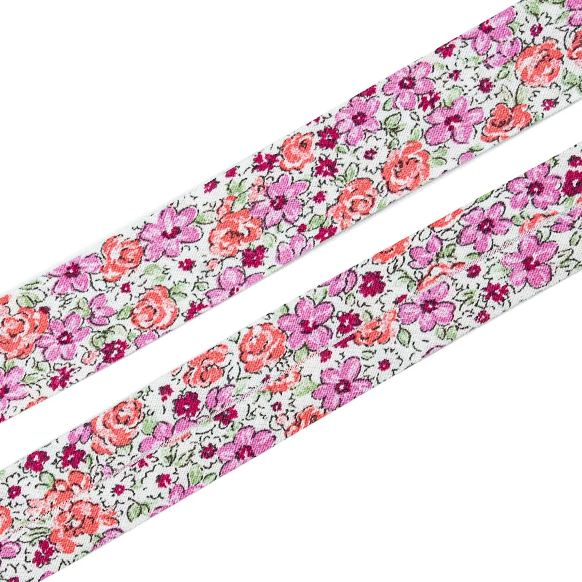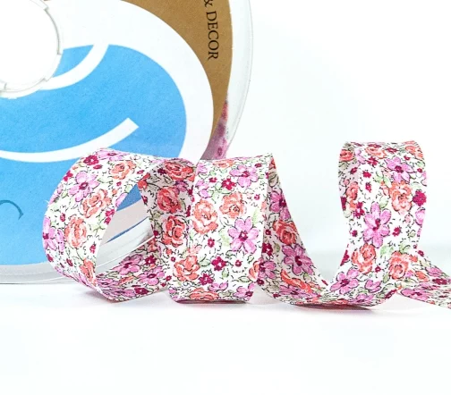 Косая бейка SAFISA с цветами, 20 мм, цвет 01, розовый/белый