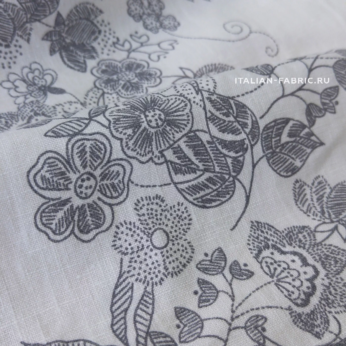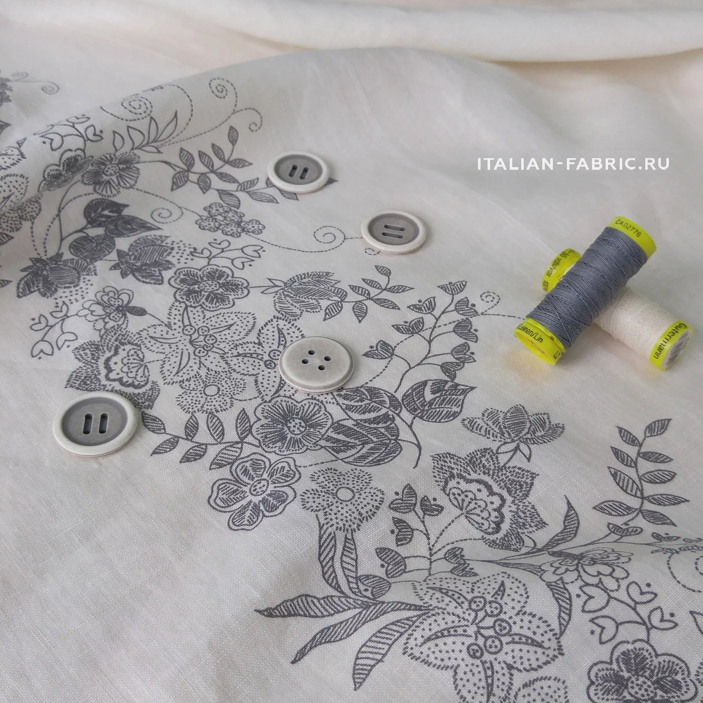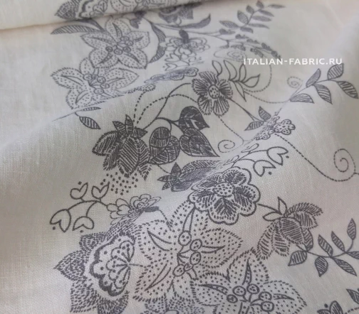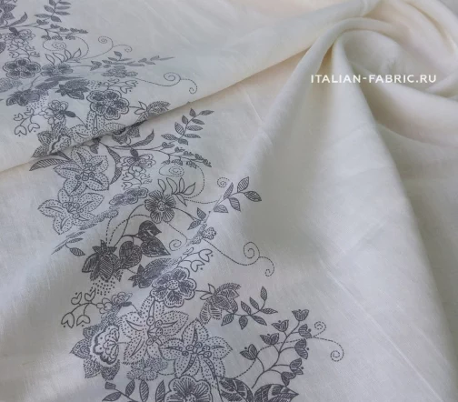 Кайма с цветочным узором серого цвета по обеим кромкам, высота 15 см. Основной фон молочный.