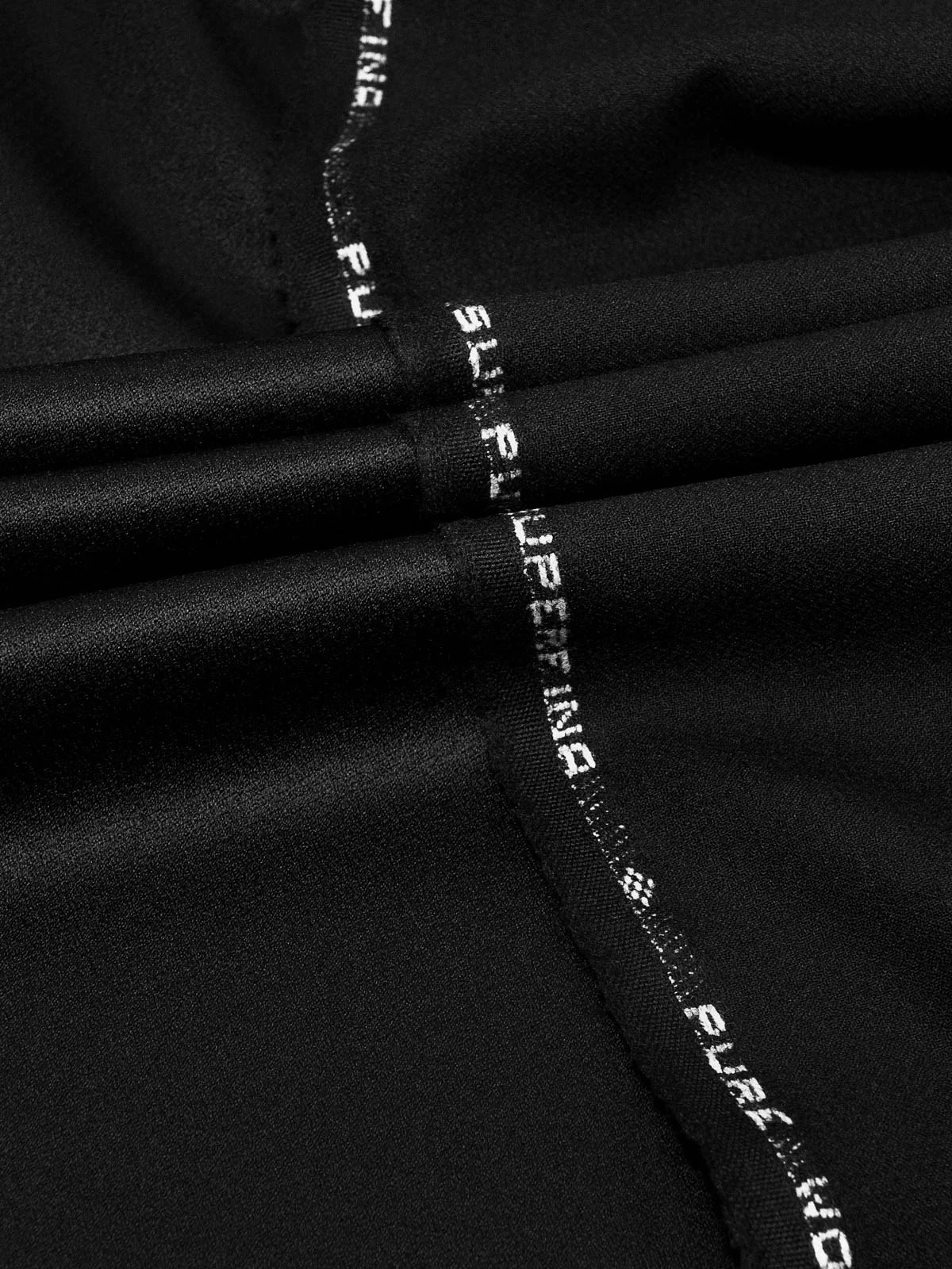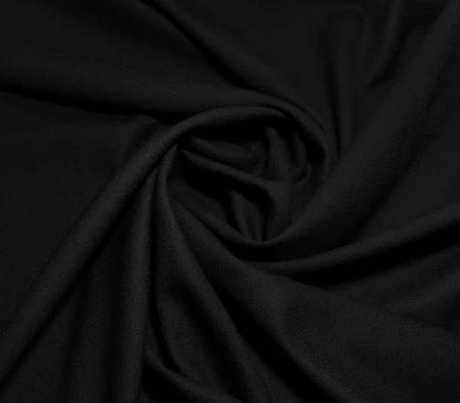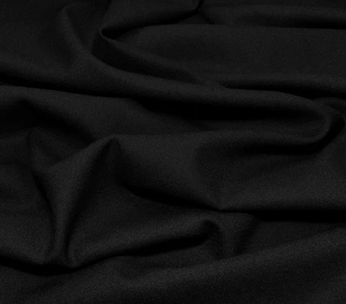 Костюмно-плательный шерстяной креп средней плотности с фирменной кромкой Superfina Pure Wool (чистая шерсть высочайшего качества). Универсальная в применении. Идеально подходит для таких базовых изделий, как платье, юбка, свободные брюки, костюм, жакет. Цвет чистый черный, без седины, с легким глянцем. Практически не мнётся.