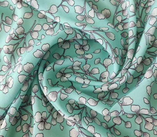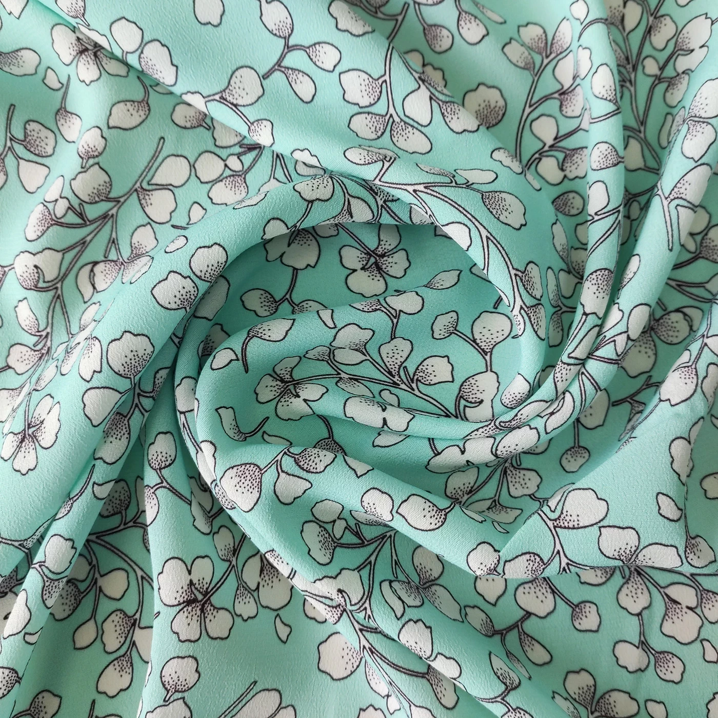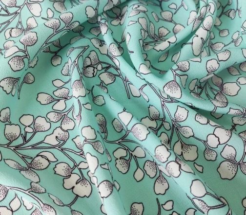 Для самых изящных летних комбинезонов, платьев, блузок, юбок, топов мы предлагаем очень красивый креп с принтом «Листочки». Материал приятный к коже, средней плотности, струящийся.