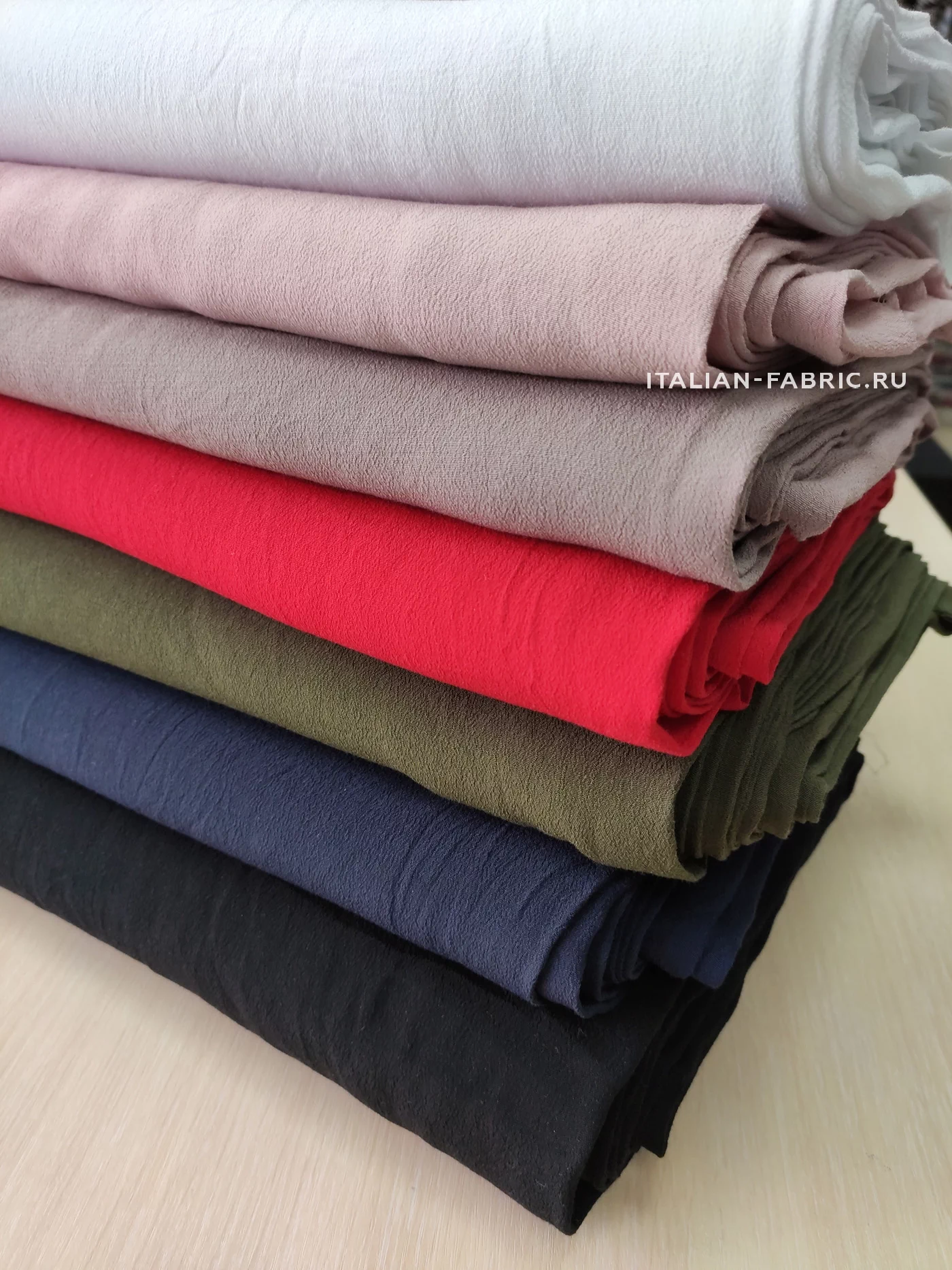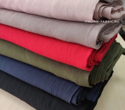 Уникальное качество и актуальные оттенки - основные преимущества вискозного крепа Alta Moda. Средней плотности, ближе к тонкому – креп идеально подойдет для летних комбинезонов, блуз и платьев, особенно летящих фасонов. Материал мягкий и очень приятный на ощупь, с красивой немного рыхлой фактурой. Шикарные оттенки для ваших стильных изделий: классические белоснежный и черный цвета, актуальные пастельные цвета - пепел розы и какао, яркий красный с малиновой ноткой, стильный хаки и глубокий темно-синий.