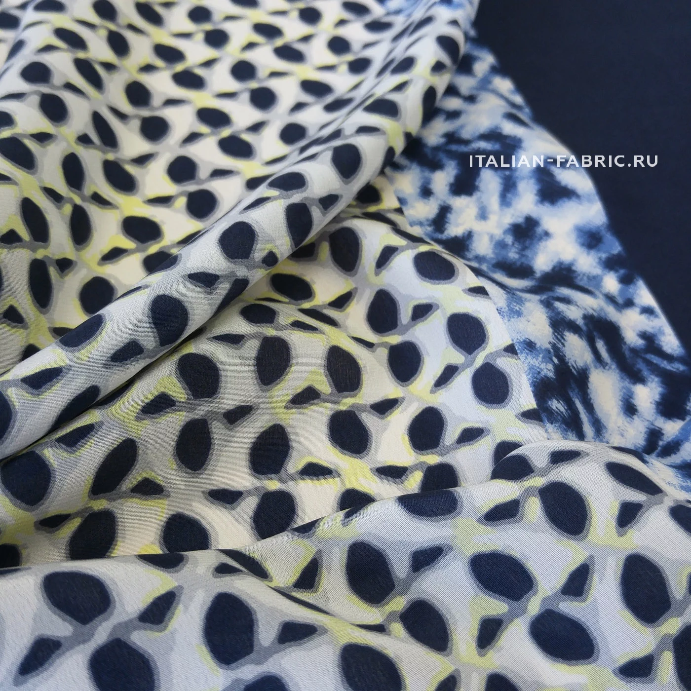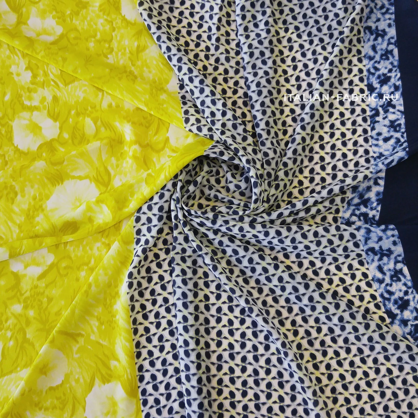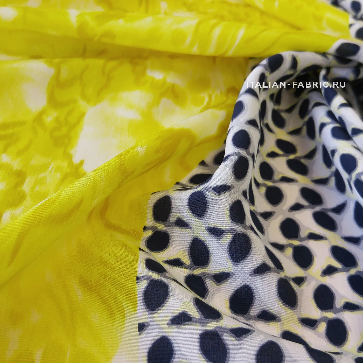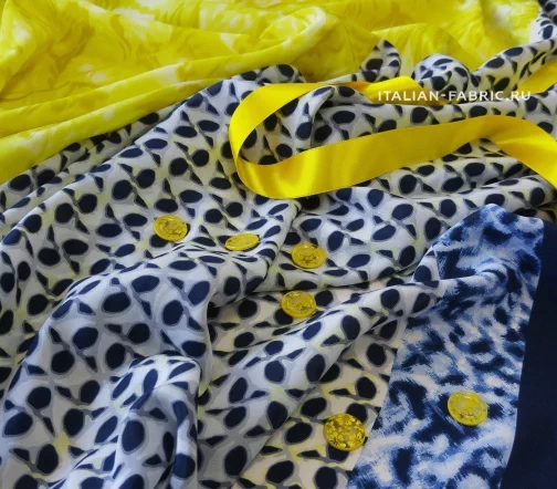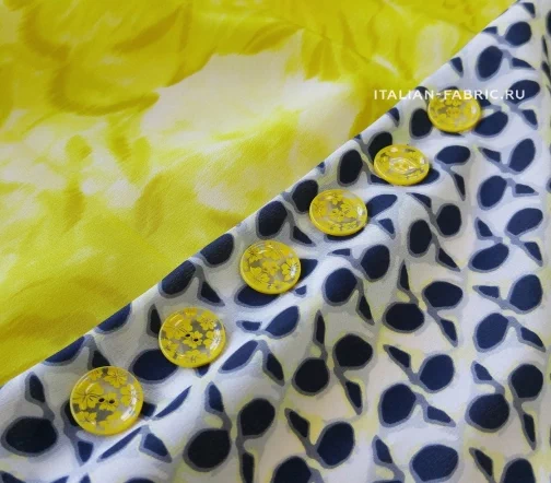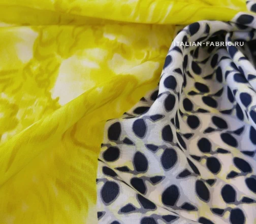Прекрасный и очень оригинальный крепдешин в восхитительном сочетании оттенков, принтов и их расположения. Левая часть полотна с акварельными цветами в желтых и пастельно-желтых оттенках – ширина 53 см. Правая часть – с графичными четырёхлистными маленькими цветочками на молочно-сером фоне –ширина 84 см (включая кайму 24,5 см). Крепдешин будет изумительно смотреться в длинном платье, скроенном поперек, а также любых удлиненных изделиях –накидках, юбках.