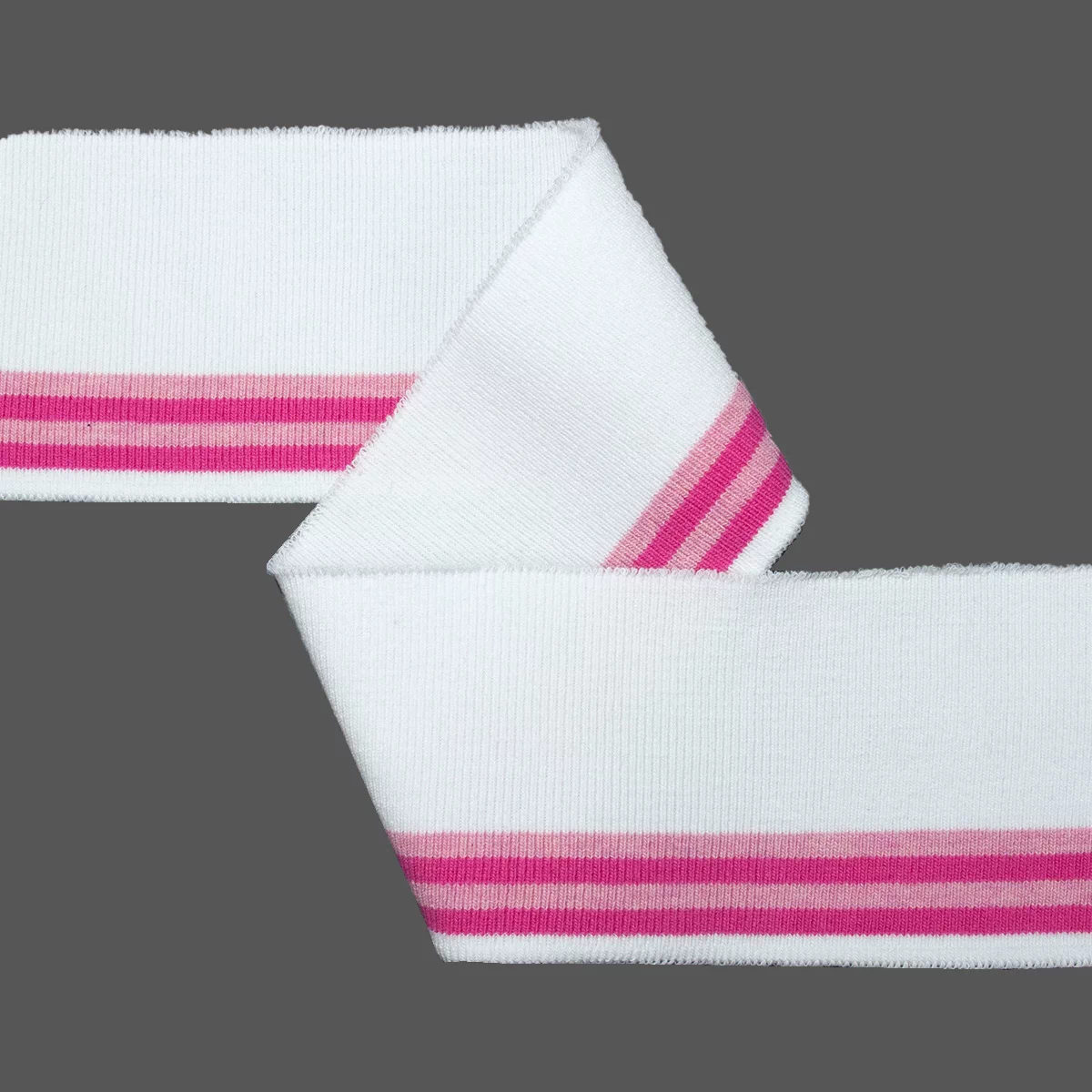 Кромка с полосками, трикотаж, белый/розовый, 137-402