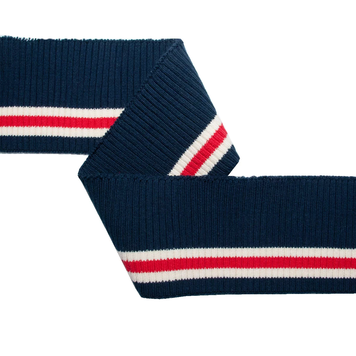 Размер: 140 х 7 см. Хлопковое полотно в полоску для кромок и манжет. Применяется для пошива курток, бомберов, свитшотов, а также обновления и создания зимней и летней одежды.