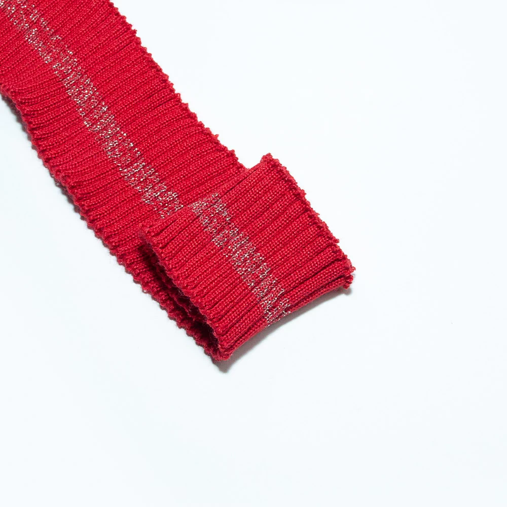 Кромка трикотаж с полоской, цвет красный/серебряный меланж