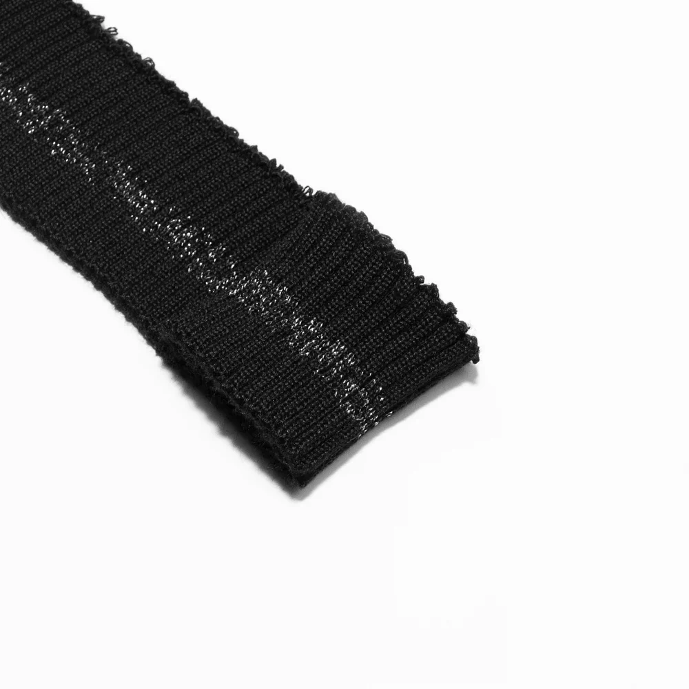 Кромка трикотаж с полоской, цвет черный/серебряный меланж