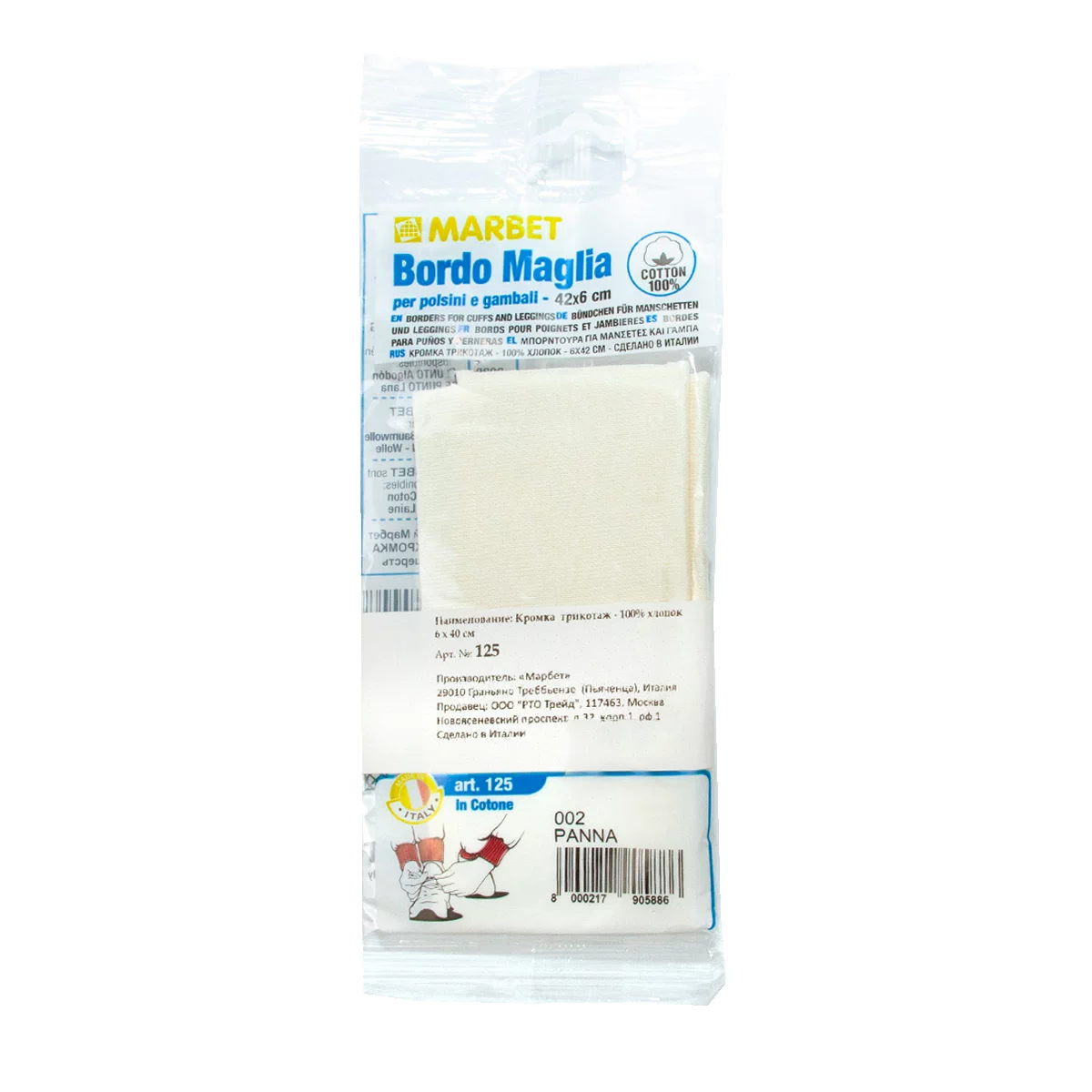 Размер: 42 см х 6 см. Трикотажная хлопковая кромка Marbet применяется для ремонта и пошива одежды. Отделка с помощью кромки создаст необходимую эластичность краю одежды, плотность прилегания, а так же придаст законченность образу вашего новой одежды и подчеркнет его индивидуальность. Рекомендованы для обновления пижам, тренировочных костюмов и т.п.