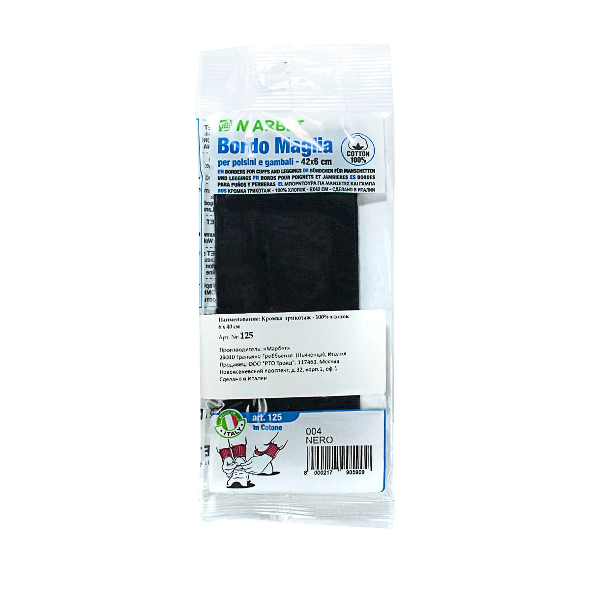 Размер: 42 см х 6 см. Трикотажная хлопковая кромка Marbet применяется для ремонта и пошива одежды. Отделка с помощью кромки создаст необходимую эластичность краю одежды, плотность прилегания, а так же придаст законченность образу вашего новой одежды и подчеркнет его индивидуальность. Рекомендованы для обновления пижам, тренировочных костюмов и т.п.