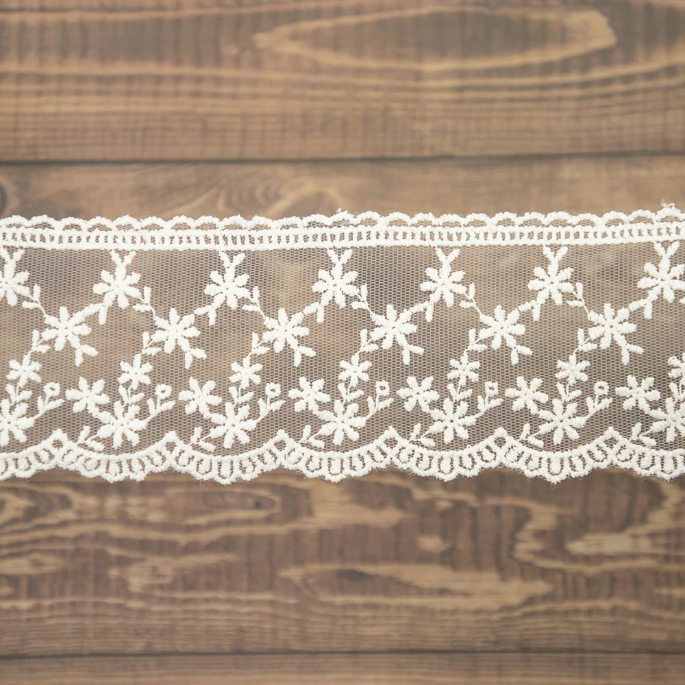Изысканно-нежное испанское кружево, созданное современными дизайнерами по традиционным старинным рисункам и в традициях кружевоплетения. Изготовлено машинным способом, при этом имеет вид тонкой ручной работы. Использованы мерсеризованные хлопковые нити №40 для "тонкого" кружева и сочетание нитей №40 с толщинами №30, №24, №18 для придания фактурности. Сфера применения: декорирование интерьерного текстиля (подушки, покрывала, скатерти, дорожки, занавеси, абажуры), одежды в народном и винтажном стиле, рукодельных проектах по пошиву кукол, скрапбукингу. Производитель рекомендует деликатную стирку при 30 градусах, сушить в расправленном виде, гладить с изнанки при 2-ом температурном режиме на подложке. Кружево плетеное нельзя стирать в стиральной машине при 60 и 90 градусах на режиме "хлопок".