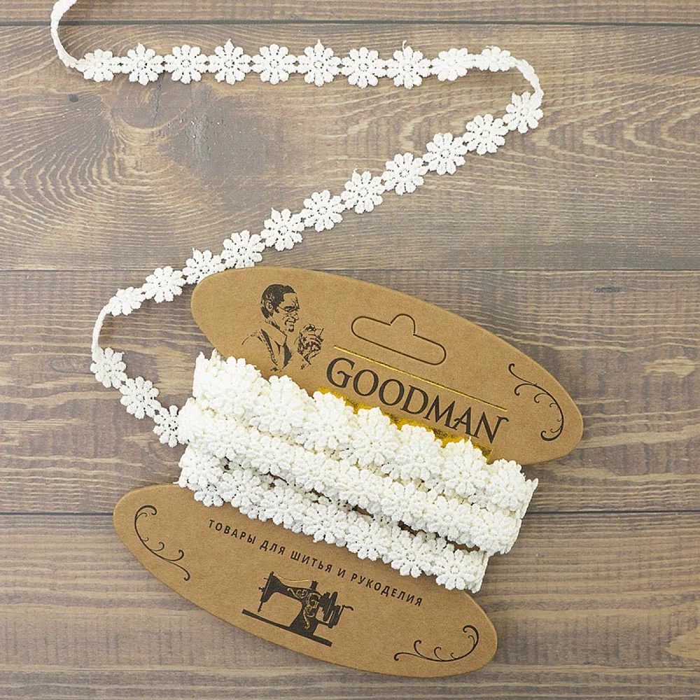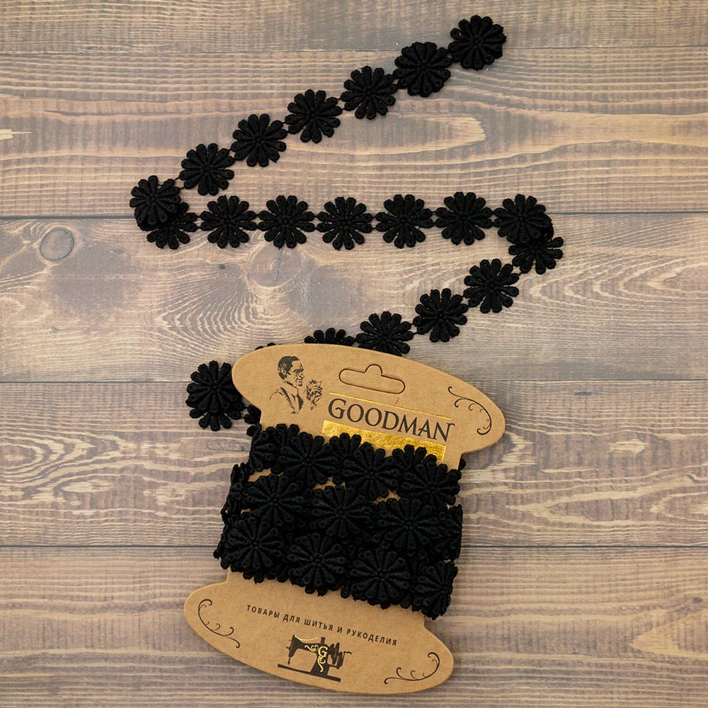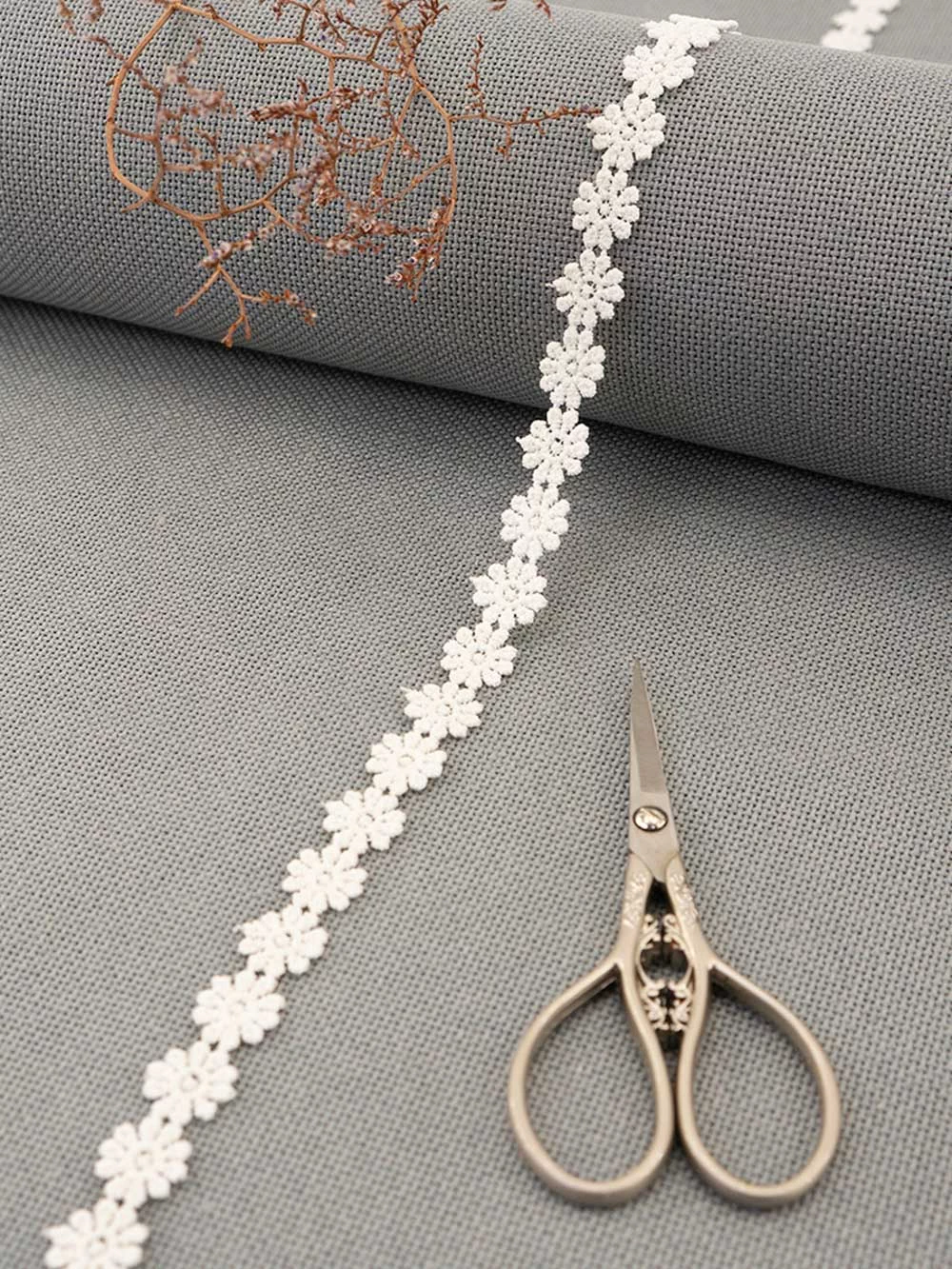 Кружево ручной работы, плетение гипюр шантильи, с обеих сторон фестончатый край, цветочно-геометрический орнамент. Узор выложен поверх объемной кордовой вискозной нитью. Прекрасно подойдет для отделки рукавов, кромки, горловины, области талии.