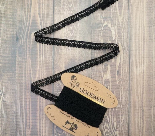 Кружево плетеное GOODMAN, ширина 10 мм, уп./5 м, цвет черный