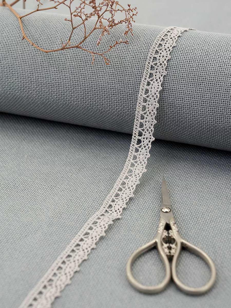 Ажурное плетеное кружево с растительным орнаментом. Используется для отделки женской, детской одежды, рукоделия. Стирать вручную. Можно и в машинке – только обязательно в деликатном режиме. Использовать жидкие чистящие средства, но не обычные порошки. Для стирки кружева ручной работы рекомендуется использовать тканевой чехол, а еще лучше – отдавать в химчистку.