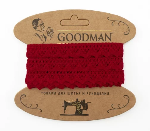 Кружево плетеное GOODMAN, ширина 12 мм, уп./5 м, цвет красный