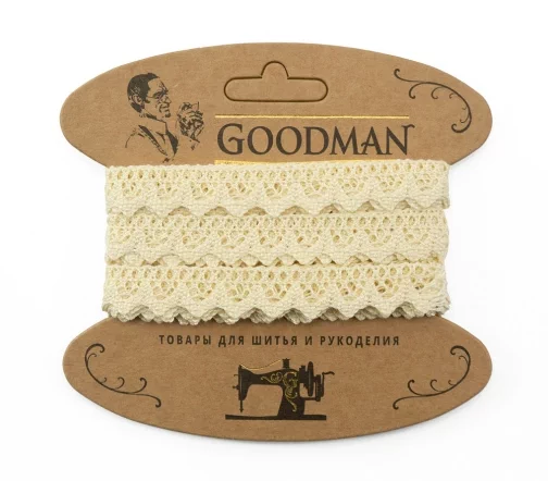 Кружево плетеное GOODMAN, ширина 12 мм, уп./5 м, цвет молочный