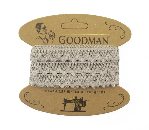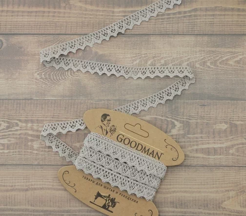Кружево плетеное GOODMAN, ширина 12 мм, уп./5 м, цвет серый