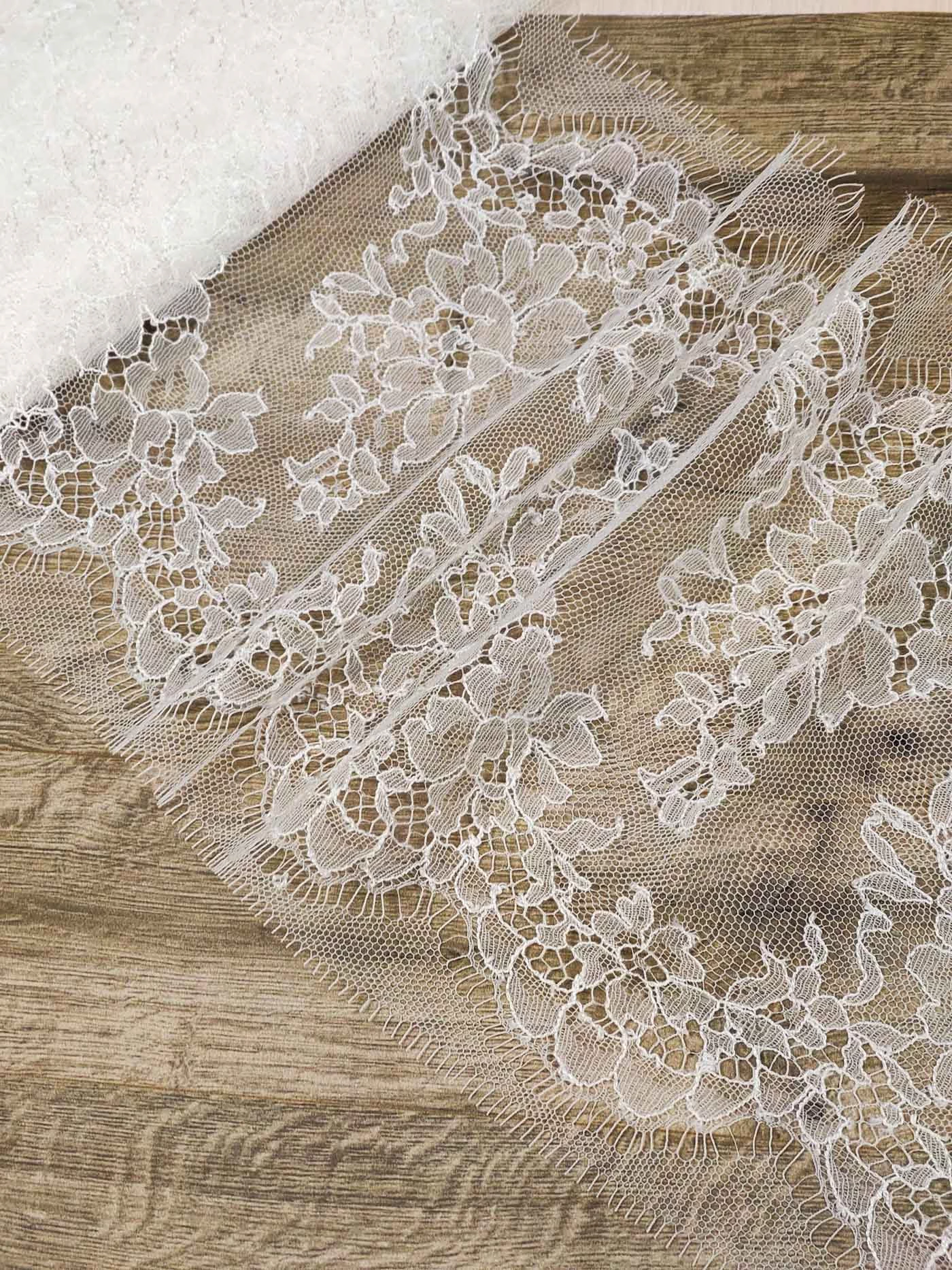 Кружево плетение гипюр шантильи, с обеих сторон фестончатый край, цветочный орнамент. Прекрасно подойдет для отделки рукавов, кромки, горловины, области талии.