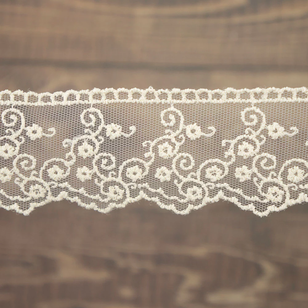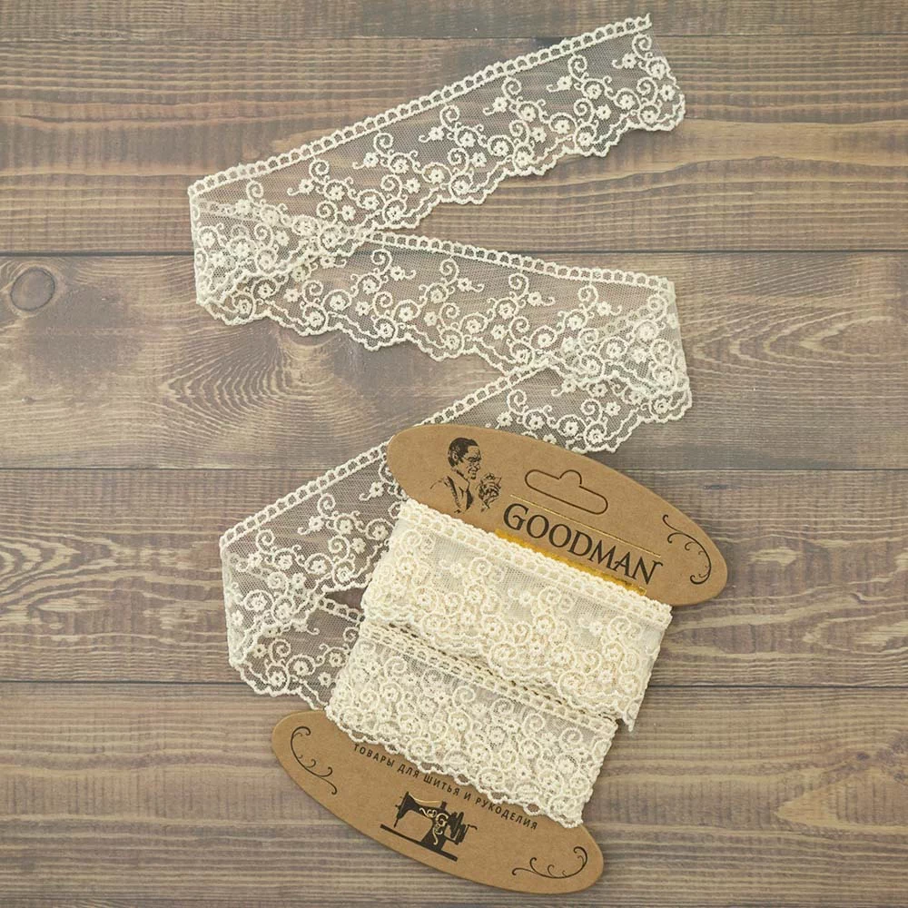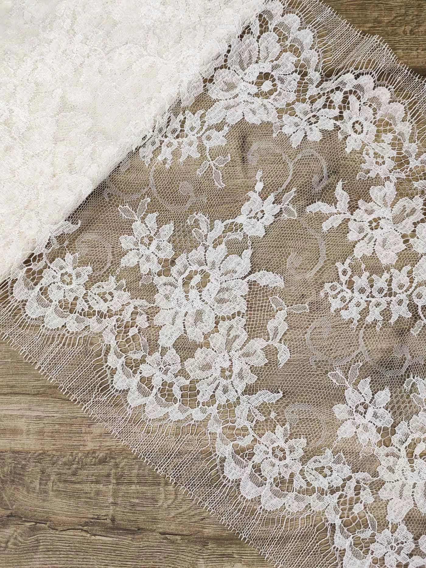 Кружево плетение гипюр шантильи, с обеих сторон фестончатый край, цветочный орнамент. Прекрасно подойдет для отделки рукавов, кромки, горловины, области талии.