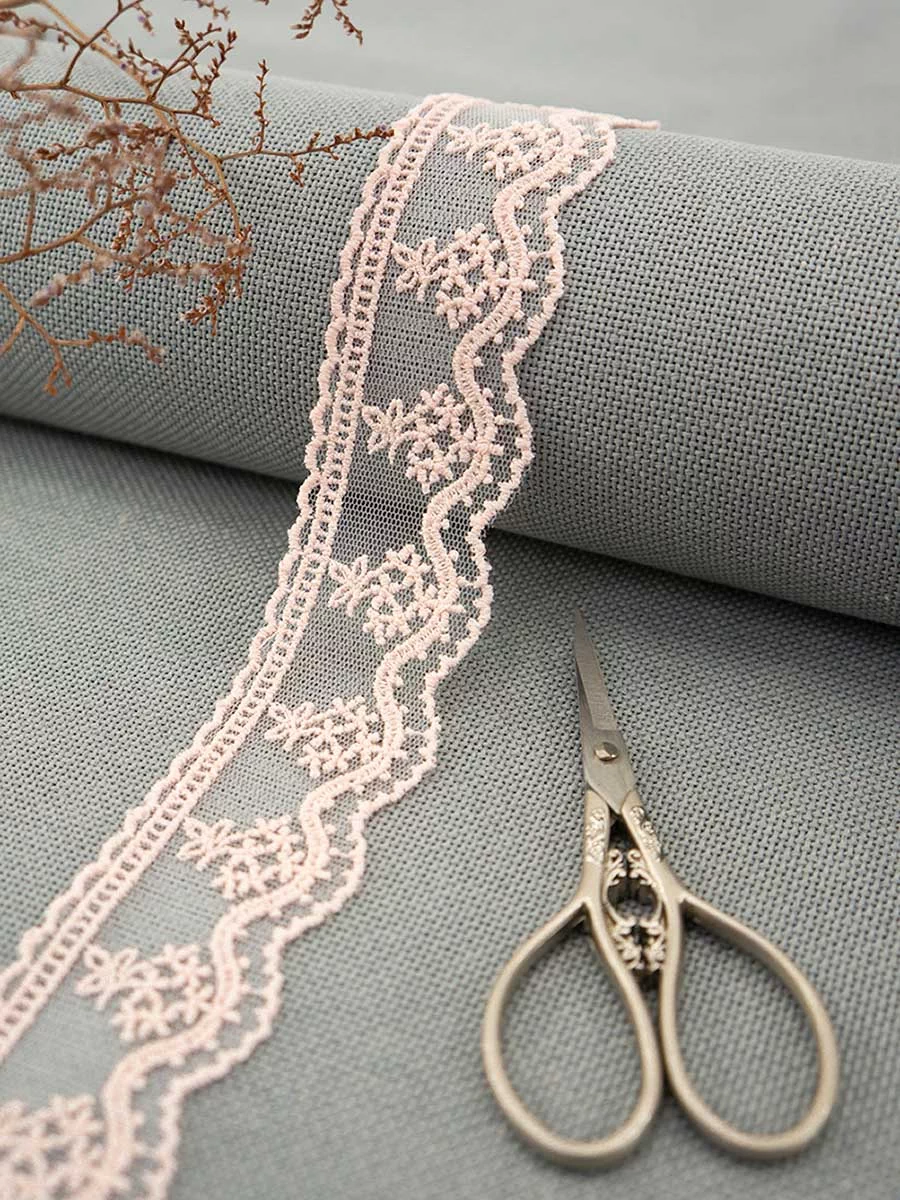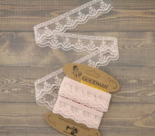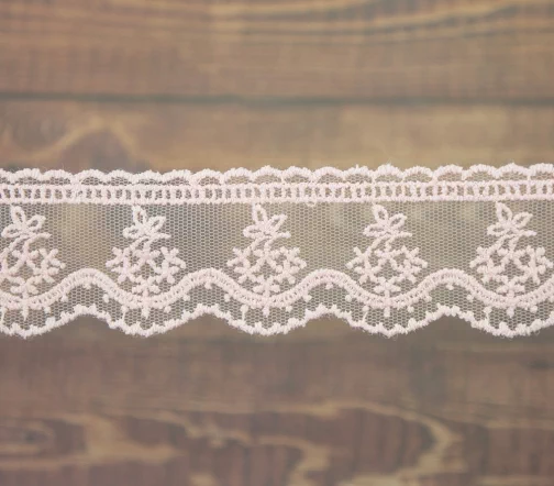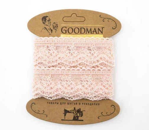 Кружево вышивка на тюле GOODMAN, ширина 23 мм, уп./4,5 м, цвет бледно-розовый