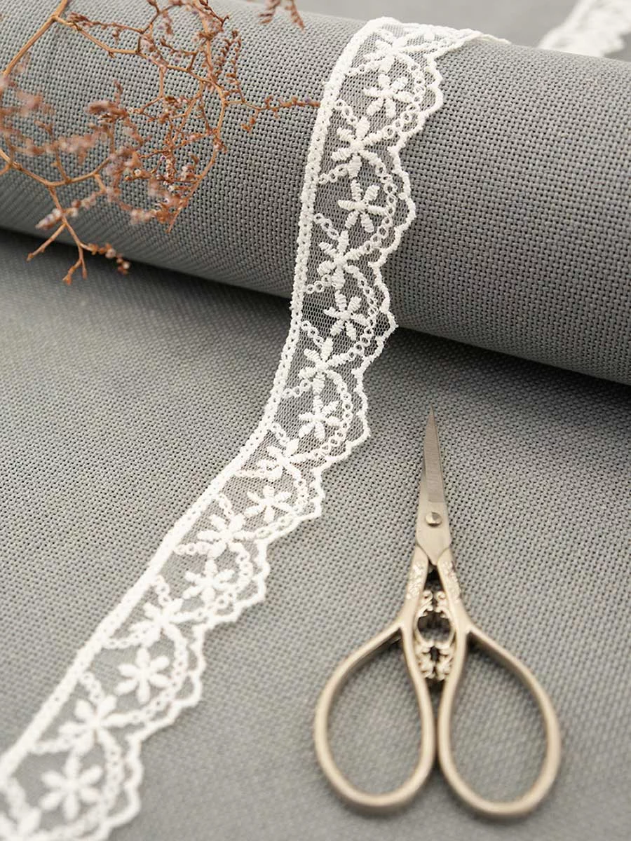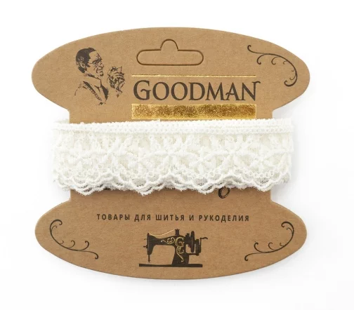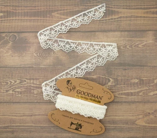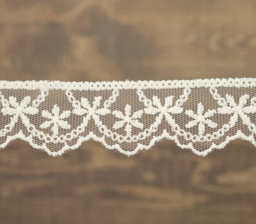 Кружево вышивка на тюле GOODMAN, ширина 28 мм, уп./3,5 м, цвет молочный